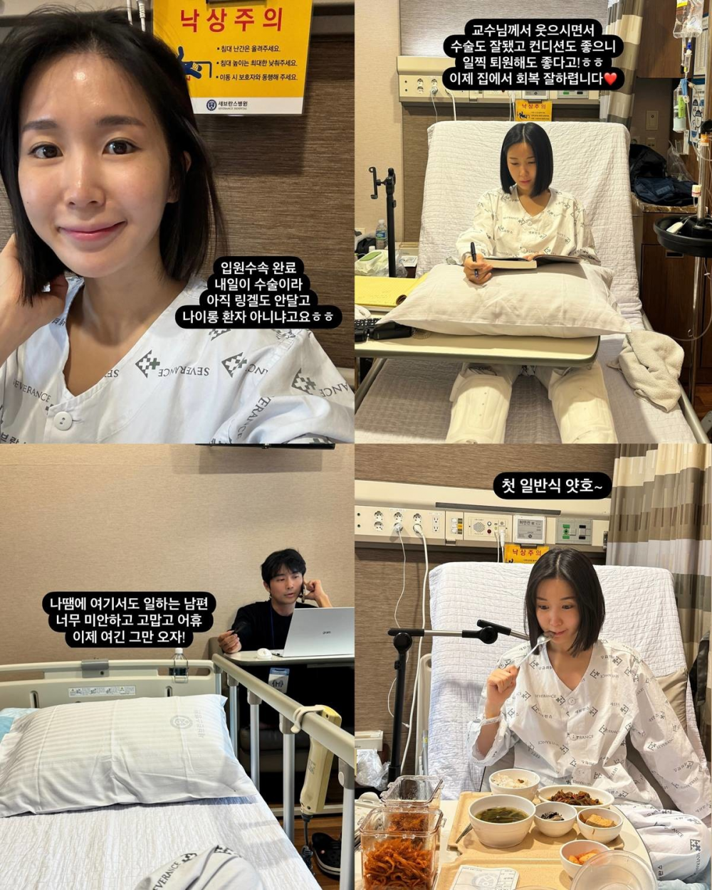 Alongside the post, ChoA shared several photos of her time in the hospital. In one of the images, her husband can be seen staying by her side while working from the hospital room. Reflecting on this, ChoA expressed her gratitude, saying, “My husband is working here because of me. I feel so sorry and grateful. Let’s not come back here anymore.”