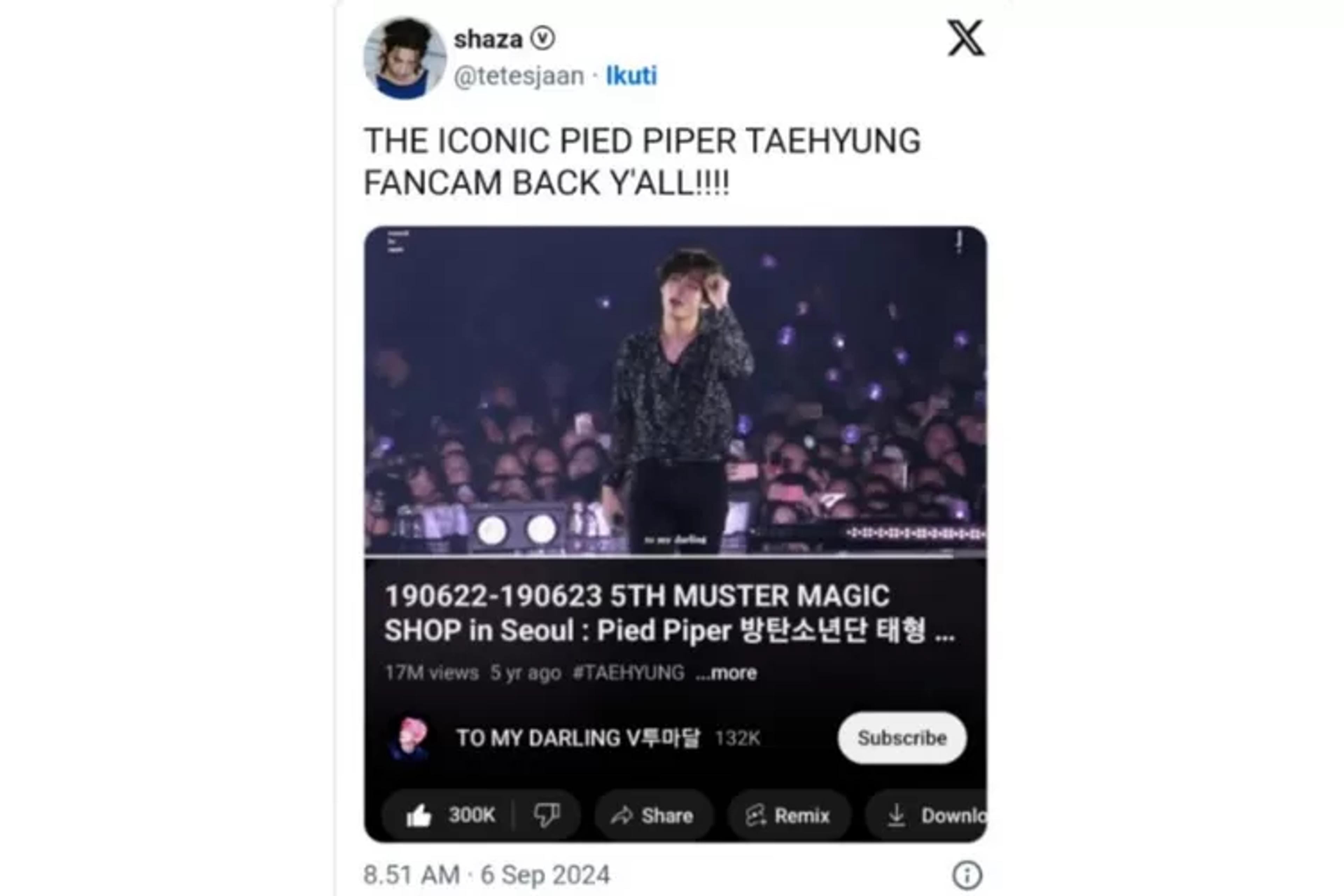 Yang mana beberapa video fancam V BTS yang legendaris tersebut kembali ke laman YouTube dengan jumlah views yang sama.