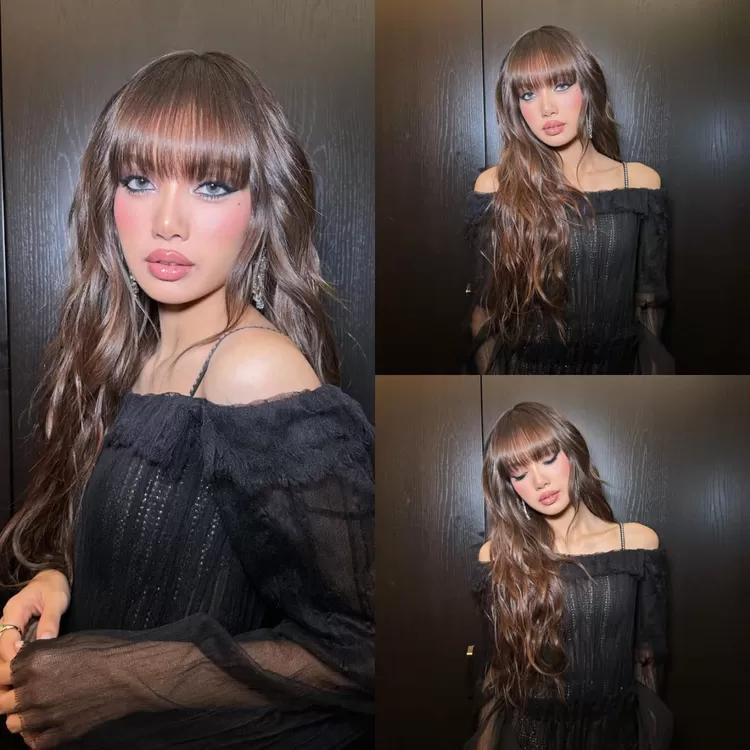 Bagaimana tidak, Lisa BLACKPINK tampil glamor dengan balutan dress panjang bewarna cream dan hitam.