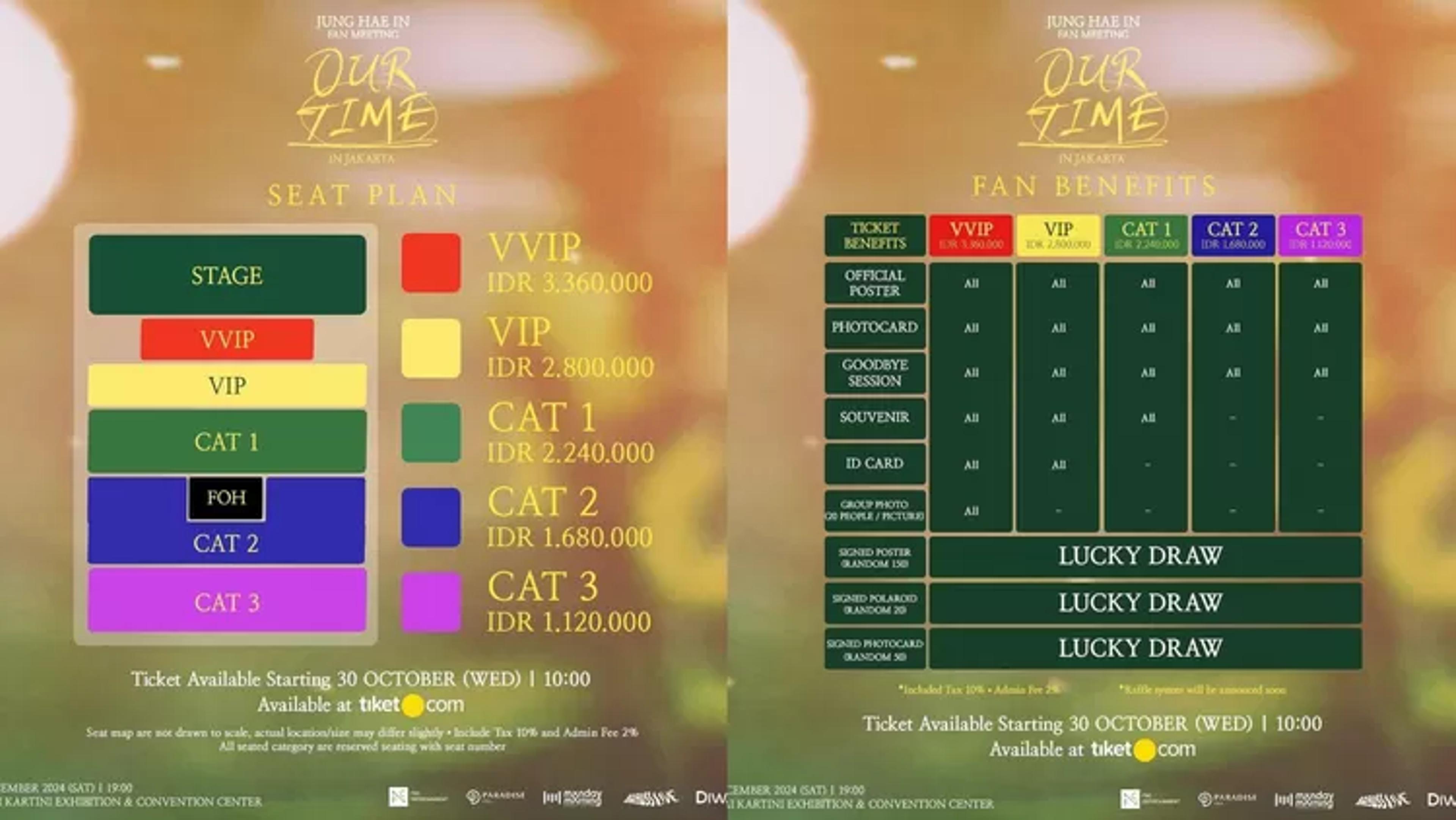 Adapun fanmeeting Jung Hae In di jakarta ini terbagi atas 5 kategori yang menyangkut harga, seat plan, dan benefit yang didapatkan sebagai berikut :